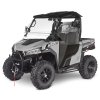 Elektrický posilňovač riadenia, polovičné plastové dvere, pevná plastová strecha, trojmiestne lavicové sedadlo s bezpečnostnými pásmi, výškovo nastaviteľný volant, plné čelné plexi, predný ochranný rám, madlá pre spolujazdcov, sklápacia korba s plynovými vzperami, hlavové opierky, 2 držiaky nápojov v navijak 3000lbs s diaľkovým ovládaním